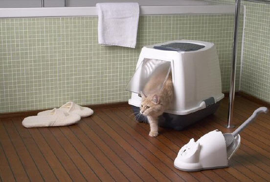 Der nächste Aufbau ist im Badezimmer, eine Katze soll dabei fotografiert werden, wie sie die Katzentoilette verlässt. Es ist eine Toilette mit Schwingtür, leider kennt die Katze so etwas nicht. Jetzt ist Improvisation gefragt, die Schwingtür muss oben befestigt werden, damit die Katze leichter durchgeht. Gemeinsam findet das Team eine Lösung, die später auf dem Foto unsichtbar bleibt. Frank Aschermann fotografiert auf dem Boden sitzend, er ist es gewöhnt für die Katzen auch in unbequemer Stellung zu verharren. Die Tiere gehen immer vor. Im Studio wird oft die Anordnung geändert, damit kein Tier gefährdet ist. Auch diese Sorgfalt zeichnet das Studio Frank Aschermann aus. Die Züchter, die ihre Tiere für die Aufnahmen zur Verfügung stellen wissen dies zu schätzen.