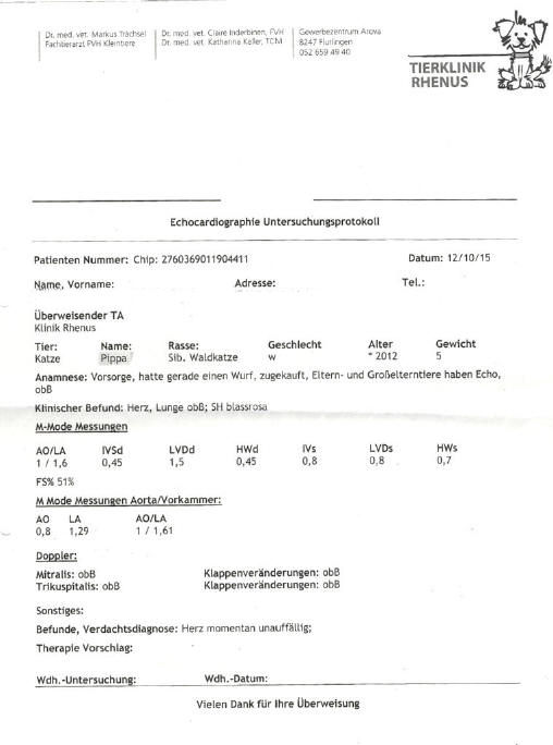 PRA-DNA-Testergebnis der Vorfahren im cinnamon-Zuchtprogramm : NN = negativ auf diese Mutation