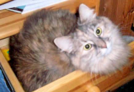 Mutter: IzErmitage Mussa seal-tortie-point/white Vater: Gorbi the Fabulous blue-cl-tabby PRA-DNA-Testergebnis der Vorfahren im cinnamon-Zuchtprogramm : NN = negativ auf diese Mutation PK-Mangel-DNA-Testergebnis der Eltern: NN = negativ auf diese Mutation |