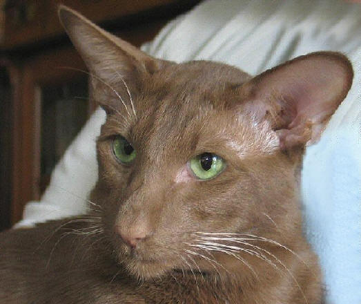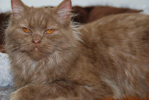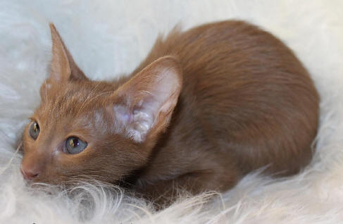 Beschreibung: zimtfarbenen ist die ganze Katze. Der Nasenspiegel ist zimtfarben. Zimtfarben sind auch die Fußballen. Je rot-brauner die Farbe ist, desto besser. Es sollen keine hellen, oder gar weißen Flecken oder Stichelhaare zu sehen sein.