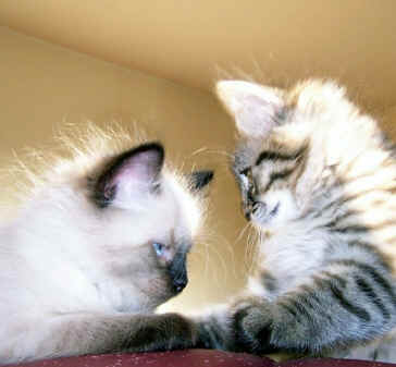 Auf Ausstellungen muß ich immer wieder erklären, daß diese Katze weder eine Heilige Birma, noch eine Ragdoll ist, sondern eine Sibirische Katze mit blauen Augen und gefärbten Beinen, gefärbten Schwanz und gefärbtem Gesicht sowie gefärbten Ohren. Der Körper dieser Katzen ist immer elfenbeinfarben. 1990 kam die erste Katze dieser Färbung nach Deutschland. Seit dem erfreut sich diese Naturkatze immer größerer Beliebtheit. Doch auch heute noch ist diese Rasse weltweit eine Rarität. Die deutschen Züchter kann man fast an einer Hand abzählen.