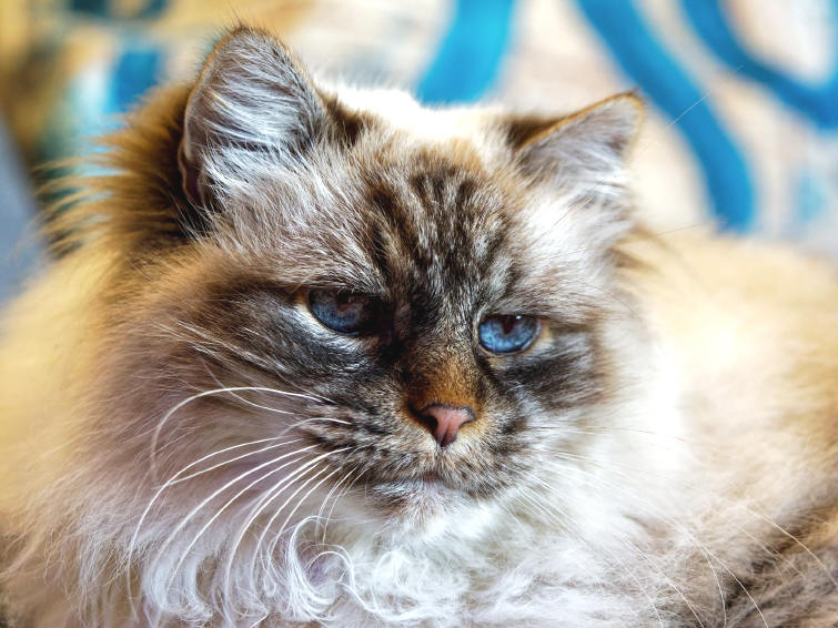 Fehler: klein, rund und eng platzierte Augen, bei der Neva Masquarade andere Augenfarbe als Blau, zu tiefliegende oder hervortretende Augen.